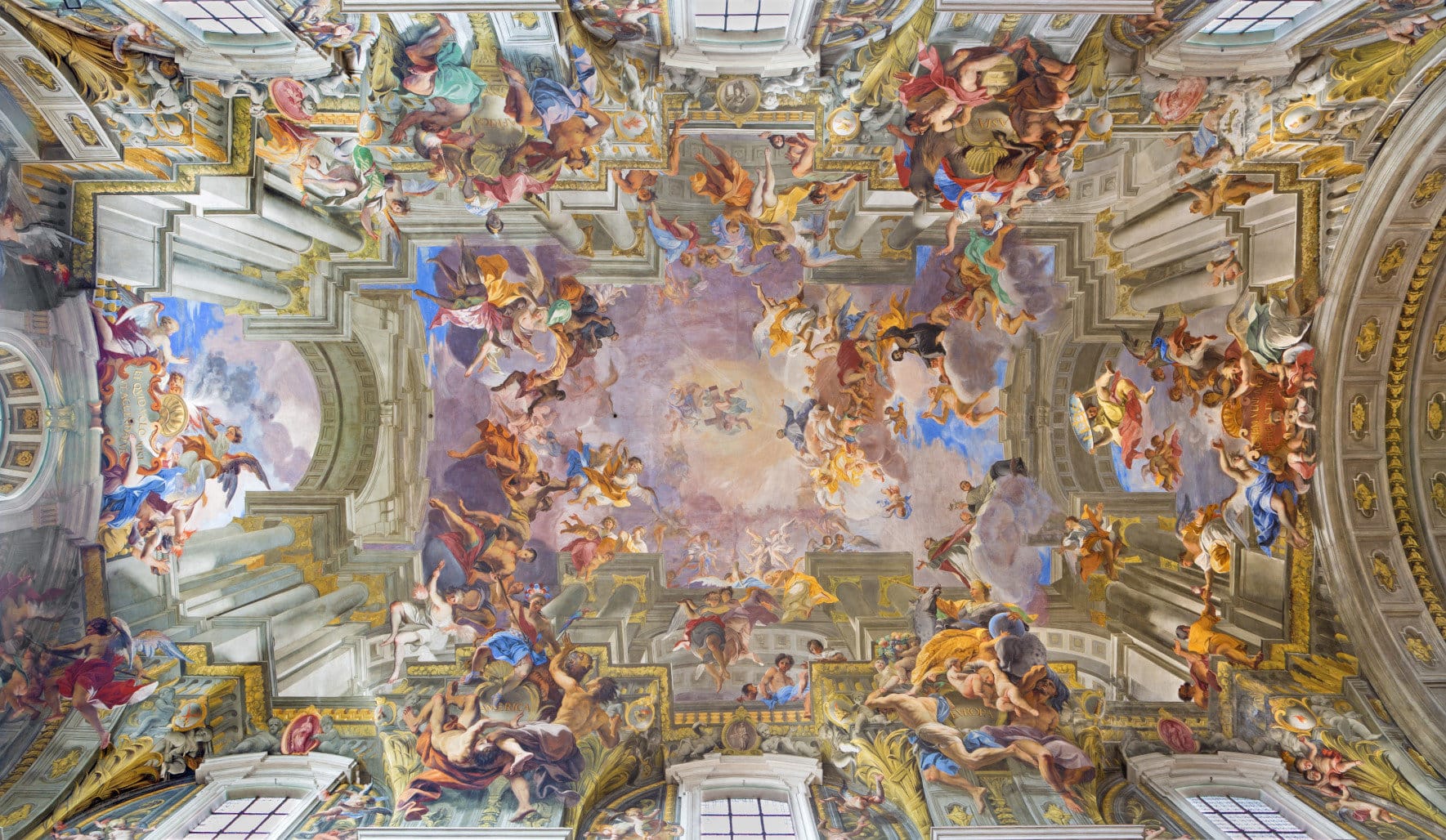 By the Baroque era, illusion expanded beyond the canvas to encompass whole architectures. The frescoes of Andrea Pozzo at Sant’Ignazio in Rome transformed ceilings into infinite heavens, merging painting, perspective, and built space.